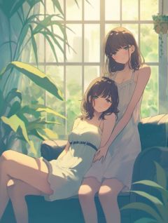 两个小姑娘脸贴着脸说着悄悄话。